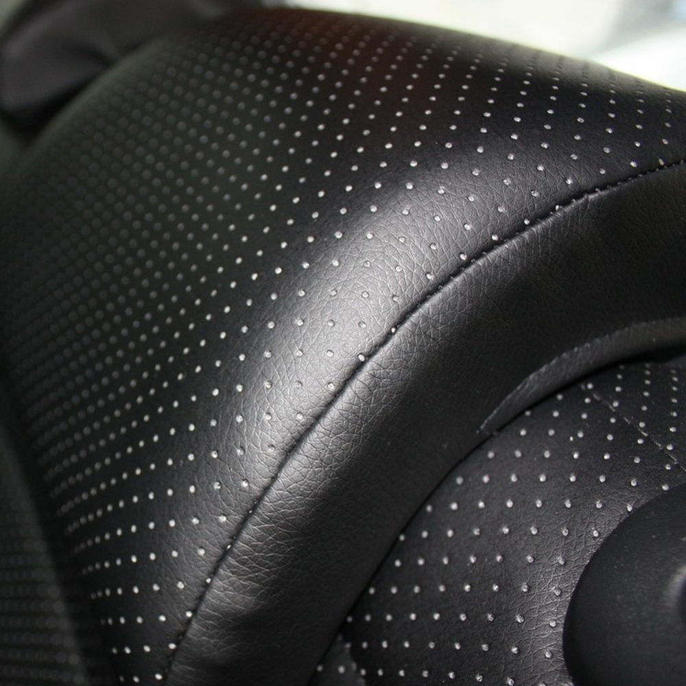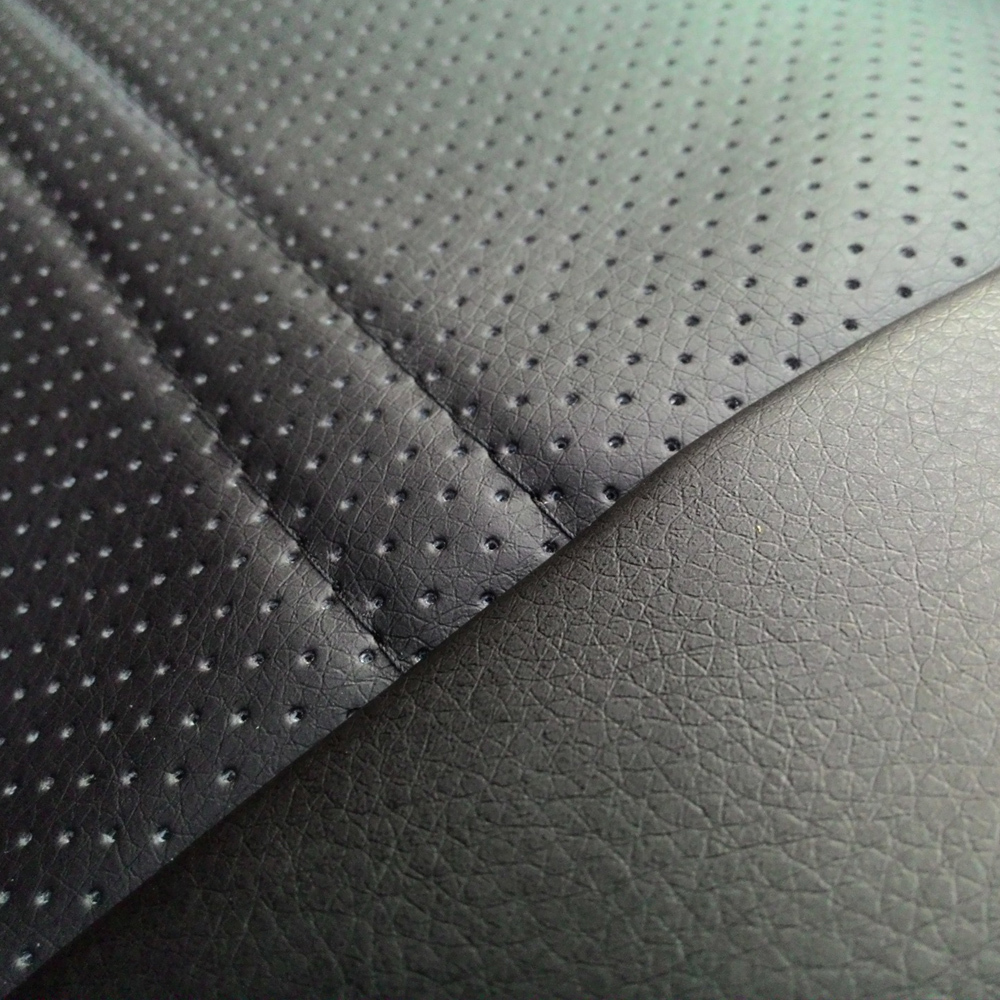 О чехлах: основа экокожа черная, центральная вставка экокожа перфорированная черного цвета, прострочка горизонтальными линиями.