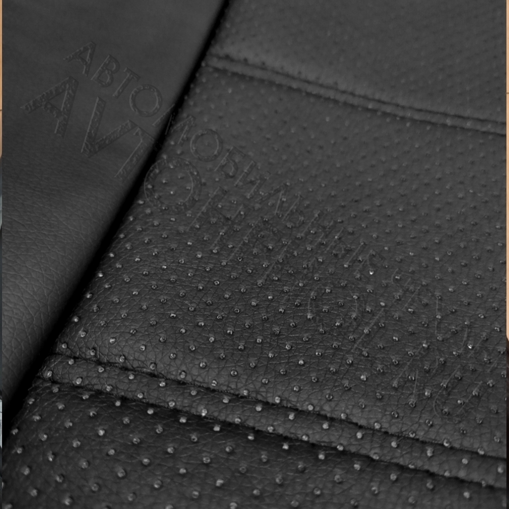 О чехлах: основа экокожа черная, центральная вставка экокожа перфорированная черного цвета, прострочка горизонтальными линиями.